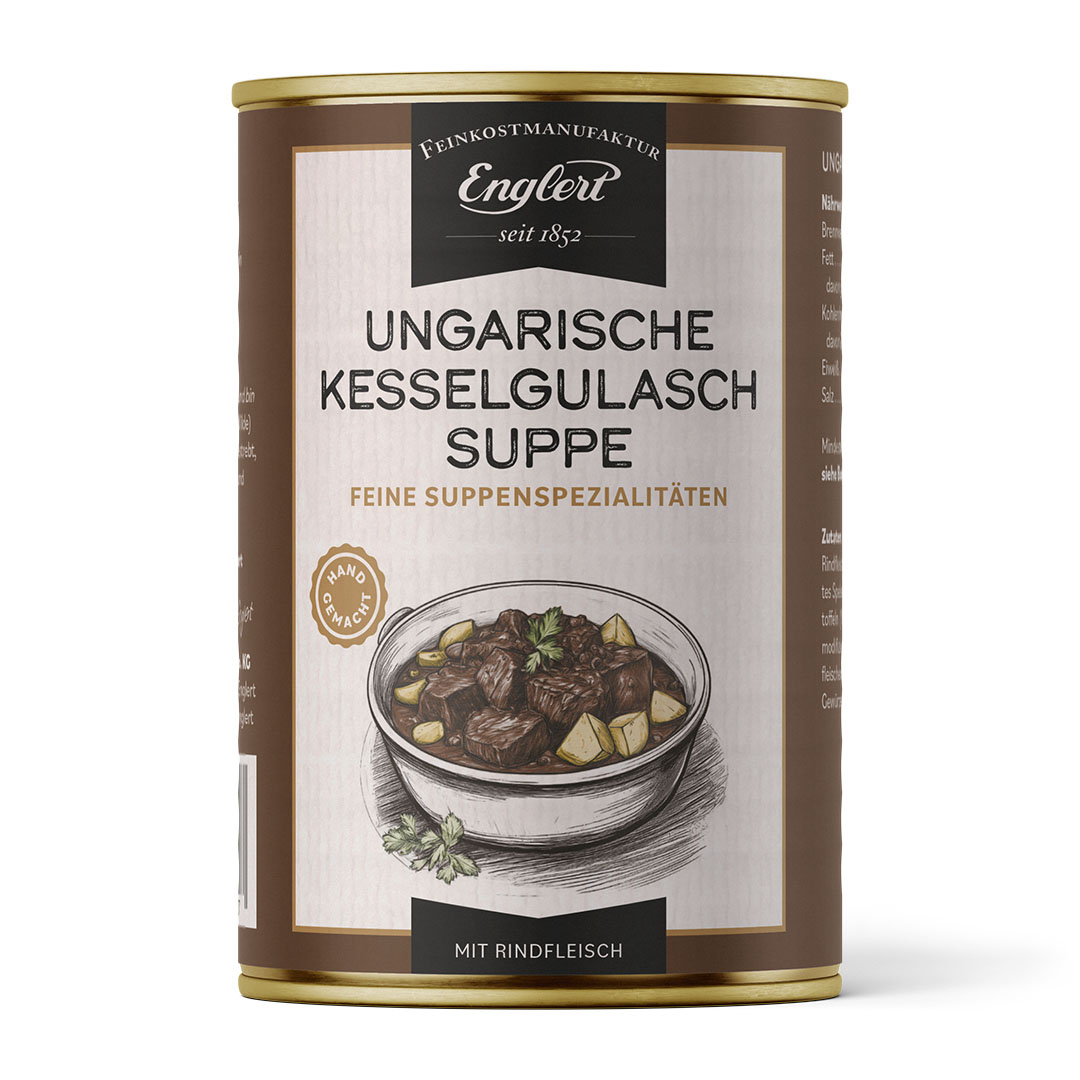 Entdecken Sie die Ungarische Kesselgulaschsuppe von Feinkost Englert – eine herzhafte und aromatische Suppe, die den authentischen Geschmack Ungarns direkt zu Ihnen nach Hause bringt. Diese Suppe ist reich an würzigen Rindfleischstücken, saftigen Paprika, Kartoffel, Zwiebeln und einer harmonischen Gewürzmischung, die für eine angenehme Schärfe sorgt. Perfekt für kalte Tage oder wenn Sie sich nach einem deftigen, sättigenden Gericht sehnen. Mit der Ungarischen Kesselgulaschsuppe von Feinkost Englert genießen Sie ein traditionelles, geschmackvolles Erlebnis, das Herz und Gaumen gleichermaßen erfreut. Guten Appetit!